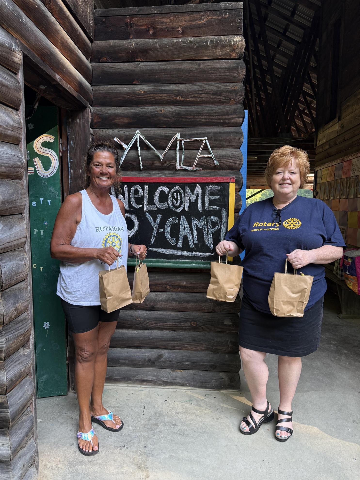 Every Thursday evening, Rotary members pack shopping bags with nutritious, high-protein, low-sugar items. The bags are delivered Friday mornings to the YMCA and discreetly sent home with campers, ensuring they have food for the weekend.