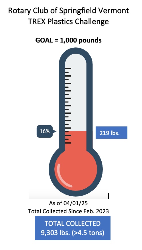 The eleventh recycled bench was given to the Springfield Community Players. We have collected 219 pounds of plastic film towards our goal of 1000 pounds of plastic film for the twelfth recycled bench that will be given to the Springfield Conservation Committee and installed near the pollinator habitat hillside at Springfield Hospital. To date, 9,363 pounds of plastic film (> 4.5 tons!) have been removed from the waste stream since we started this project in February of 2023, delivered to Shaw's and heading to Trex Company for recycling. NOTE: We are in need of volunteers to help sort the plastic at the Library. For more info, contact Alan.