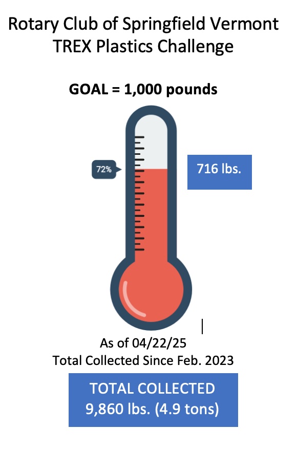 We have collected 716 pounds of plastic film towards our goal of 1000 pounds of plastic film for the twelfth recycled bench that will be given to the Springfield Conservation Committee and installed near the pollinator habitat hillside at Springfield Hospital. To date, 9,860 pounds of plastic film (4.9 tons!) have been removed from the waste stream since we started this project in February of 2023, delivered to Shaw's and heading to Trex Company for recycling. NOTE: We are in need of volunteers to help sort the plastic at the Library. For more info, contact Alan.